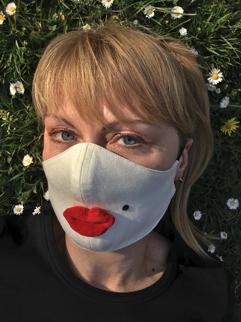 Diese Behelfsmaske ist als künstlerische Arbeit zu werten und kann kein medizinisches Produkt ersetzen. Sie kann jedoch als Spritzschutz fungieren und die unkontrollierte Verbreitung von Tröpfchen, die beim Sprechen, Niesen oder Husten ausgestossen werden, reduzieren. Schutz vor Corona oder anderen Viren bietet diese Maske nicht! Allerdings kann sie Fröhlichkeit in den Alltag transportieren!